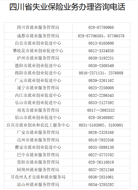 同时,四川省人社厅公开四川省失业保险业务办理咨询电话。