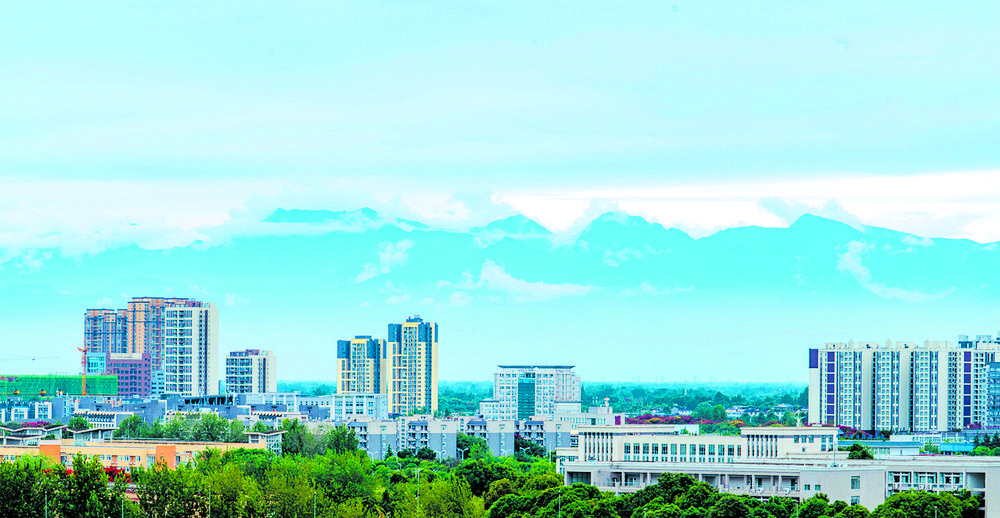 诗与远方——城市与雪山同框