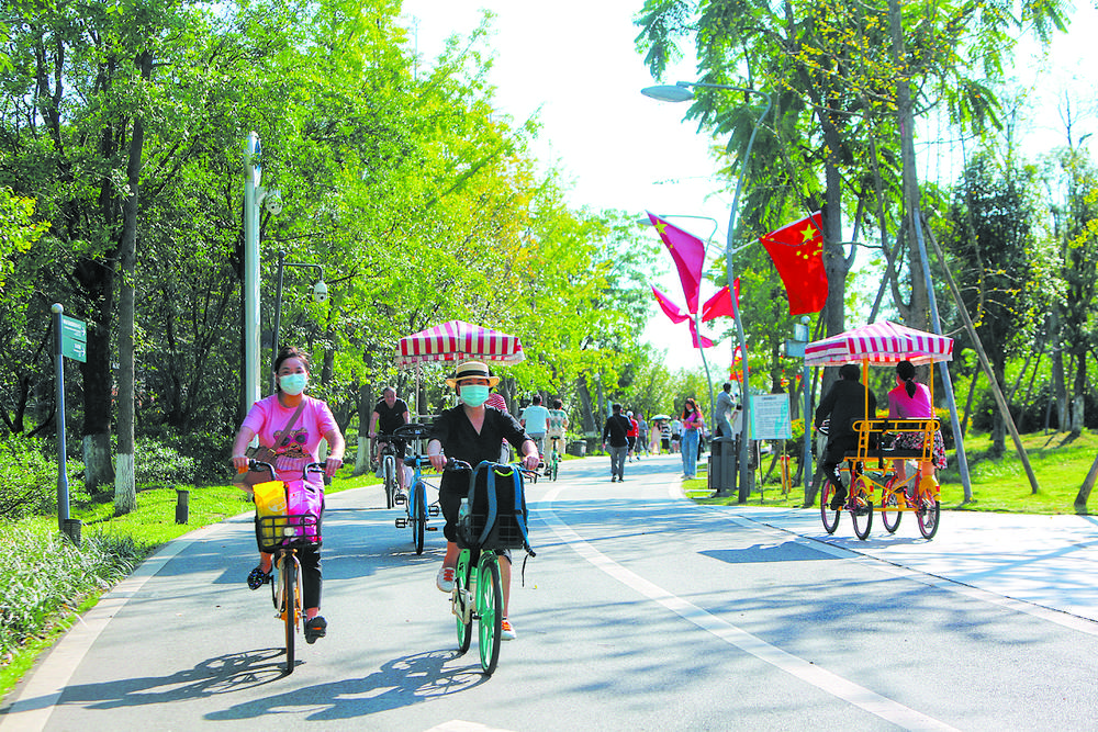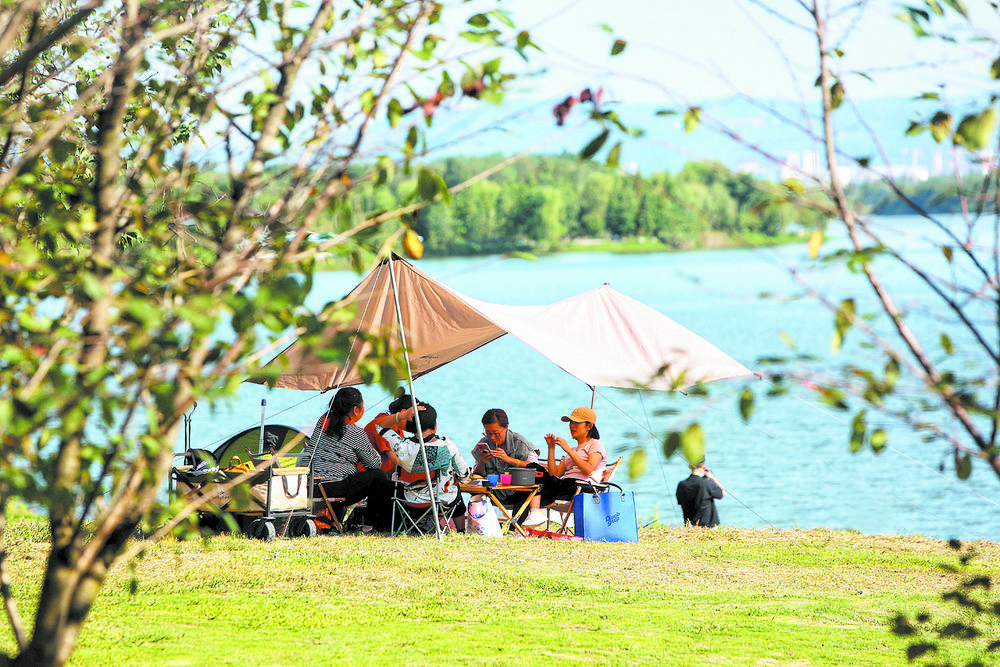 驻足远眺,碧空绿水相映,清风吹拂着公园绿道,三五好友相约,趁着大好秋色,或轻松骑行,或健步行走……人们用自己的方式,享受着公园城市给予每个人的关爱与馈赠。