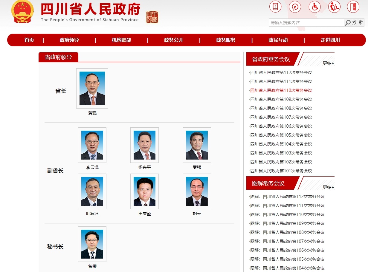 最新!四川省人民政府省长、副省长、秘书长分工