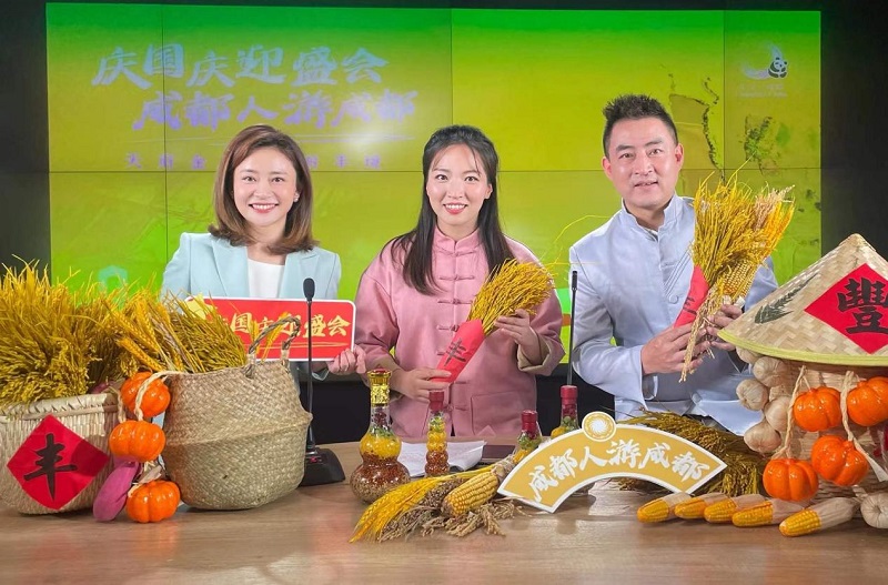 四川新闻网-首屏新闻成都10月1日讯(记者 戴璐岭)“赏天府秋色、游天府秋景、享天府秋韵、品天府秋实”,9月30日,“庆国庆迎盛会 成都人游成都”2022成都文旅国庆活动直播火热来袭。本场直播活动由成都市文化广电旅游局主办,据了解,直播活动统合了成都秋季特色景区(点)、线路、展览、产品,走进了新津天府农博园、武侯祠博物馆、成都博物馆、天府艺术公园、郫都川菜博物馆等特色景区(点),直播内容主要涵盖中国农民丰收节节庆、秋季美食、文博观展、研学旅行等方面。特别的是在本场直播中,还有国庆丰收特色线路及假期活动惊喜推介,看点满满。