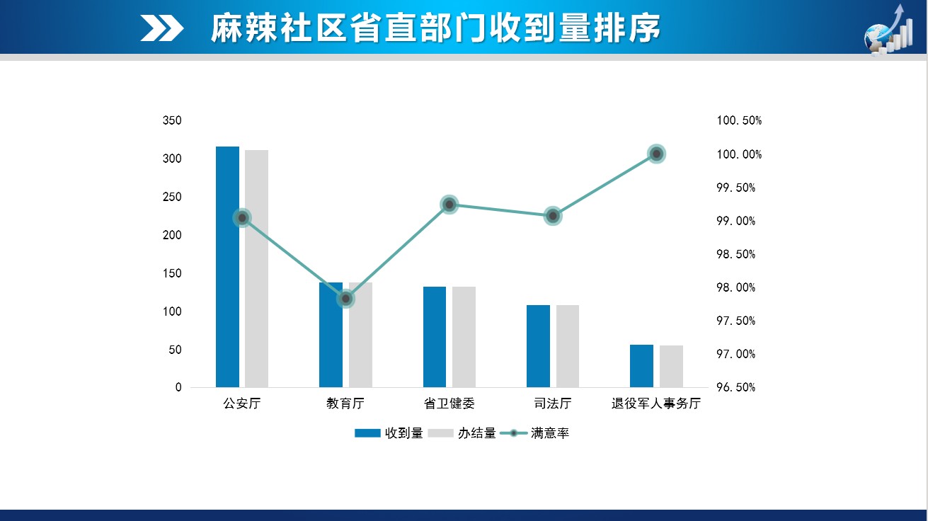 收到量排名前五的省直部门(单位)分别是:公安厅、教育厅、省卫生健康委员会、司法厅、退役军人事务厅。