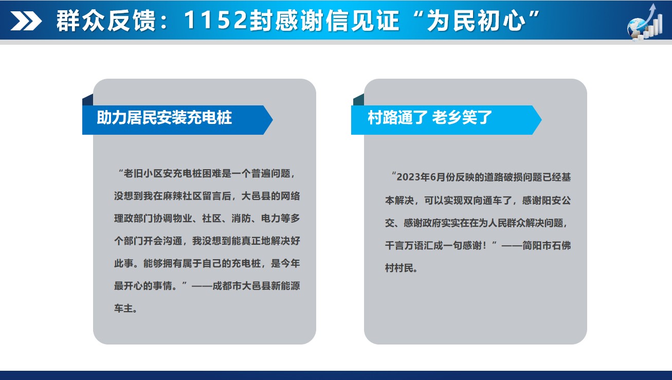 群众的反馈是检验网上群众工作的“试金石”。2023年,四川省各级部门快速回应、全力解决群众留言,全年收到1152封质朴真诚的感谢信。