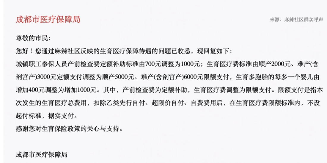 [办实事]四川问政回音|成都生育医疗待遇提高了?医保局解答