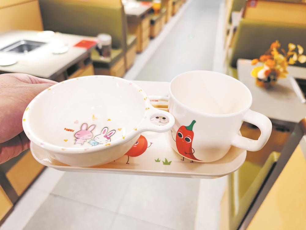 某火锅店内提供的儿童餐具