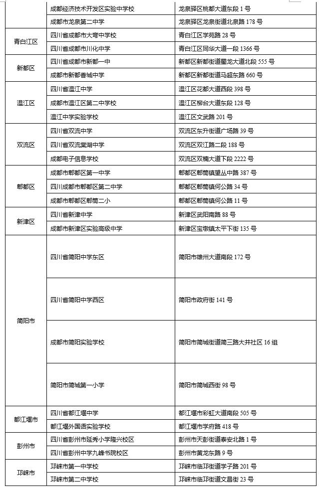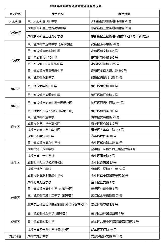 2024年成都市普通高考考点设置情况