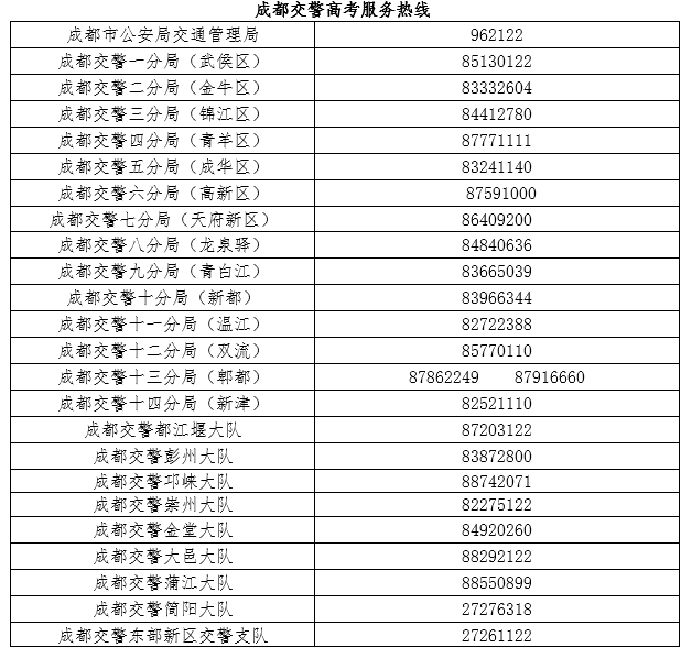 成都交警高考服务热线