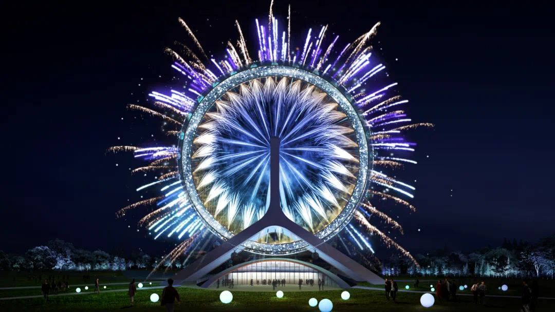 作为园区地标之一,摩天轮利用圆心大屏,将展现芙蓉花开,体现世园会会徽。夜晚还可以实现多样的光彩变化,用电子烟花点亮主会场的流光溢彩,形成美轮美奂的互动演绎场景。