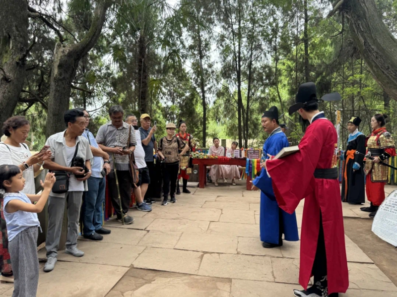 今年端午假期在翠云廊上演的《点树交印》古制巡演 图由剑阁县委宣传部提供