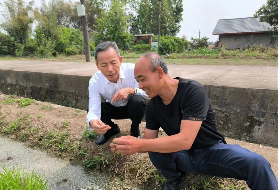四川农业大学教授马均在田间指导种粮大户育秧 受访者供图
