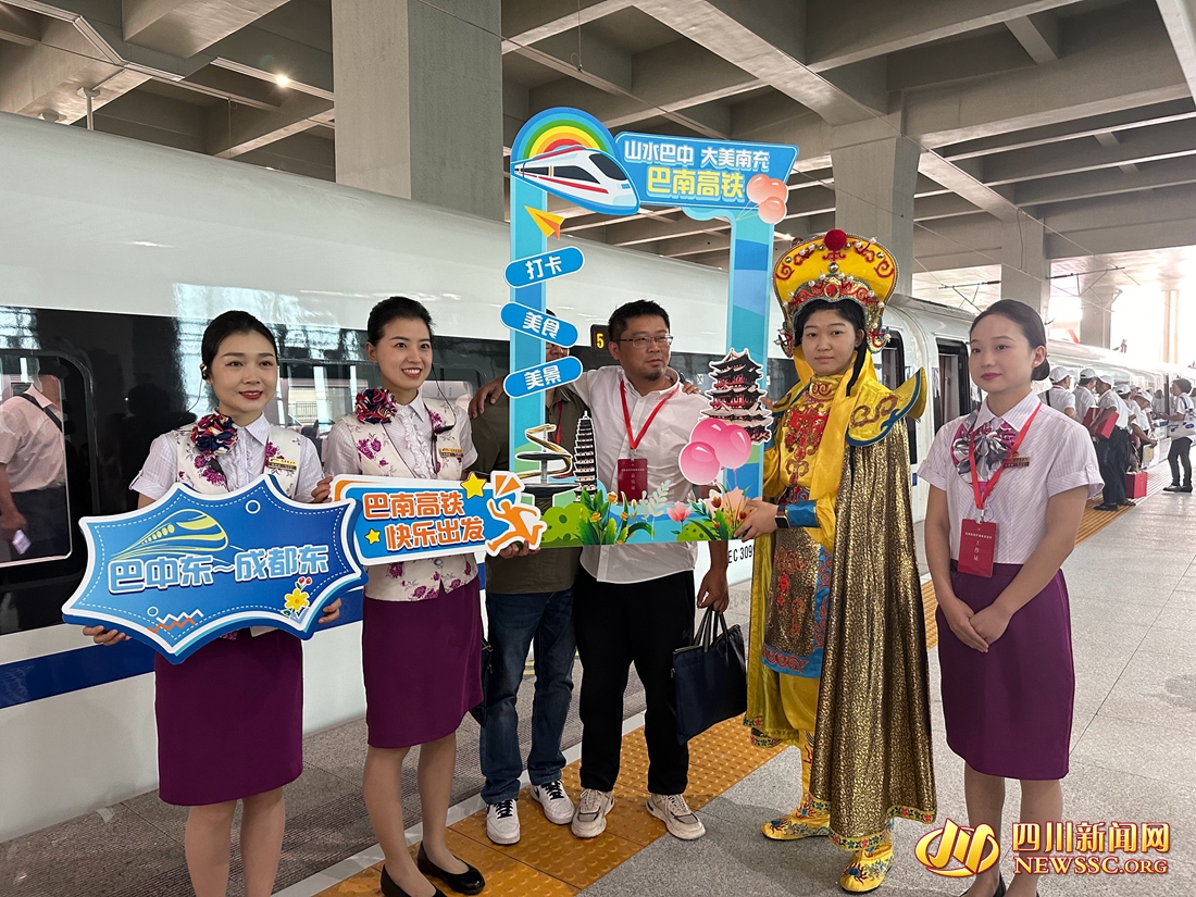 四川新闻网-首屏新闻巴中6月27日讯(记者 戴璐岭 周琼 实习生 邱可欣 摄影报道)“呜——”6月27日上午9点10分,随着一声清脆的鸣笛声,巴南高铁首发列车缓缓驶出站台。车厢内,乘客们激动地欢呼道,“终于可以坐着高铁从巴中去成都了!”