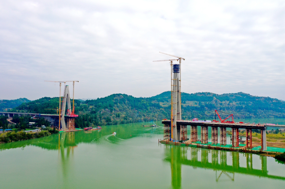 嘉陵江特大桥独特的高低塔结构(成都铁路局供图)