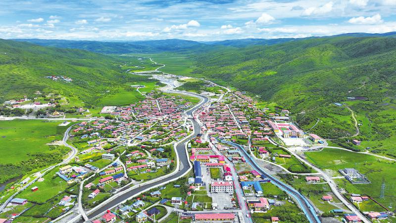 6月30日,鸟瞰大力发展牧业的红原县查尔玛镇什布龙村。
