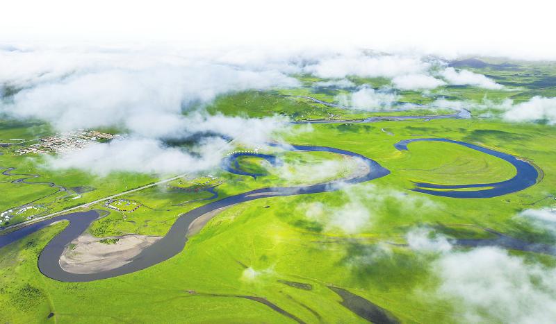 6月30日,黄河上游的支流白河从红原县安曲镇下哈拉玛村前流过,形成了一幅绮丽壮美的高原水乡图。