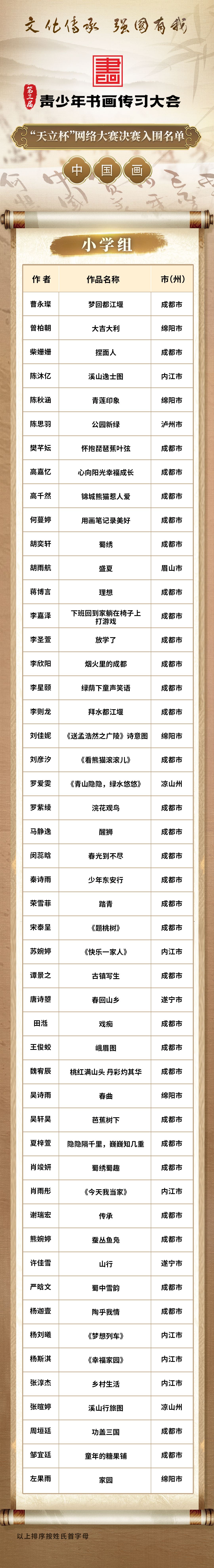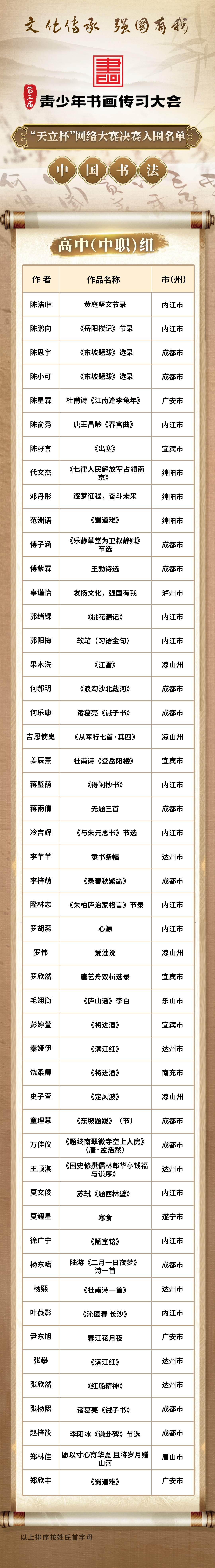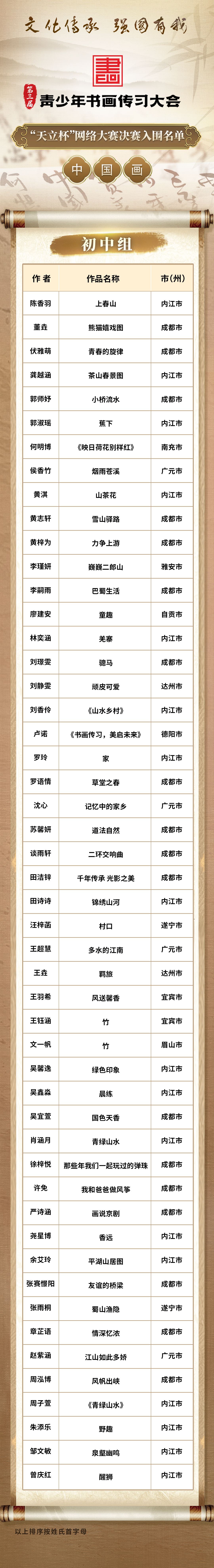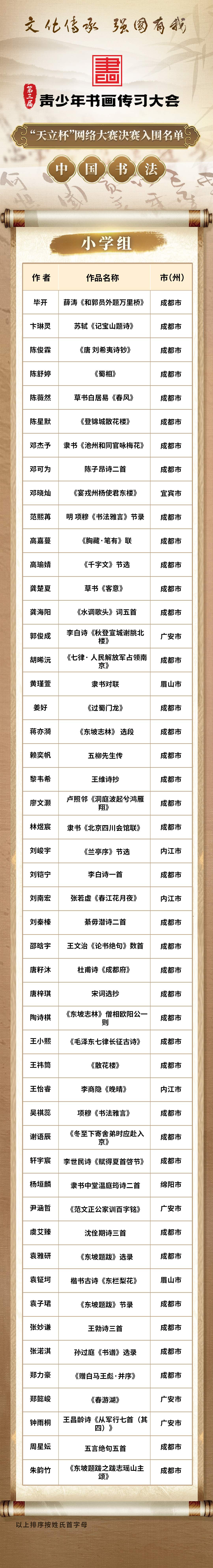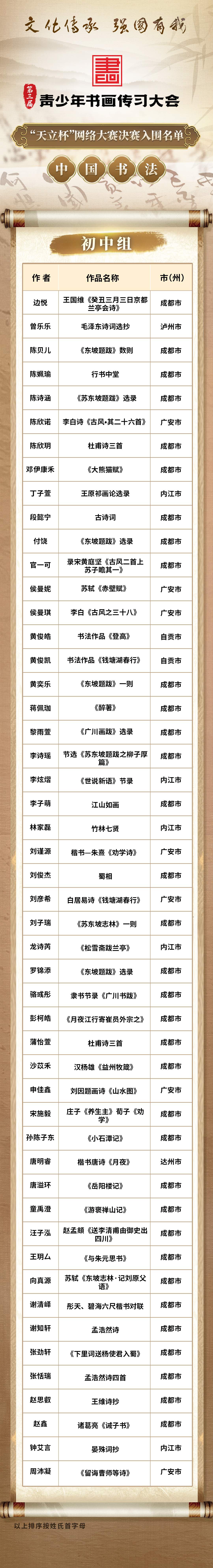 名单出炉!这些选手入围第三届青少年书画传习大会“天立杯”网络大赛决赛