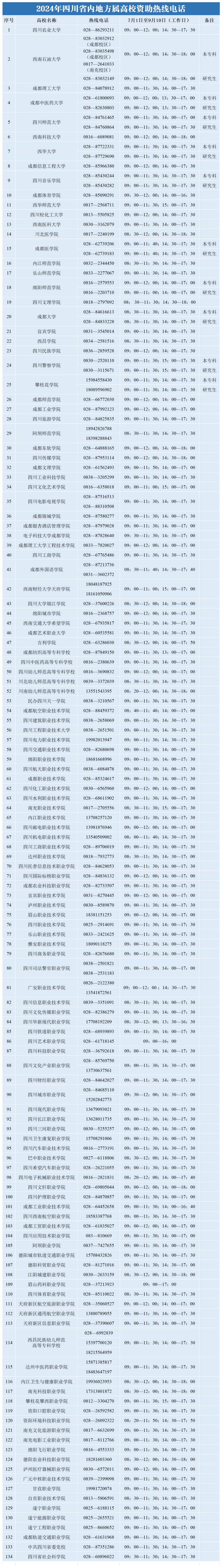 2024年四川省市县、高校、中职校学生资助热线电话公布