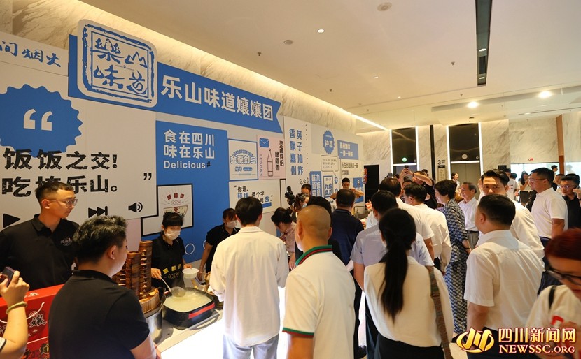 启动仪式现场,飘香四溢的美食展区映入眼帘,钵钵鸡、甜皮鸭、豆腐脑等众多乐山特色美食令人垂涎。展区设乐山老字号美食、乐山网红美食、峨眉山茶等区域,以品尝体验、模型展示等形式,展示极富特色的“乐山味道”。展区现场,多位乐山知名餐饮品牌老板娘还身着传统服饰,组成“乐山味道嬢嬢团”,为乐山美食加油助力,引得众多嘉宾和高校学生代表驻足围观。