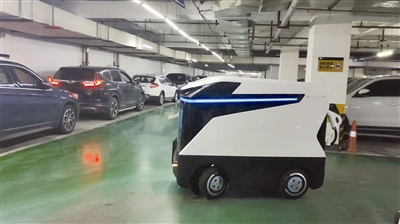 充电机器人在停车场寻找下单车辆.