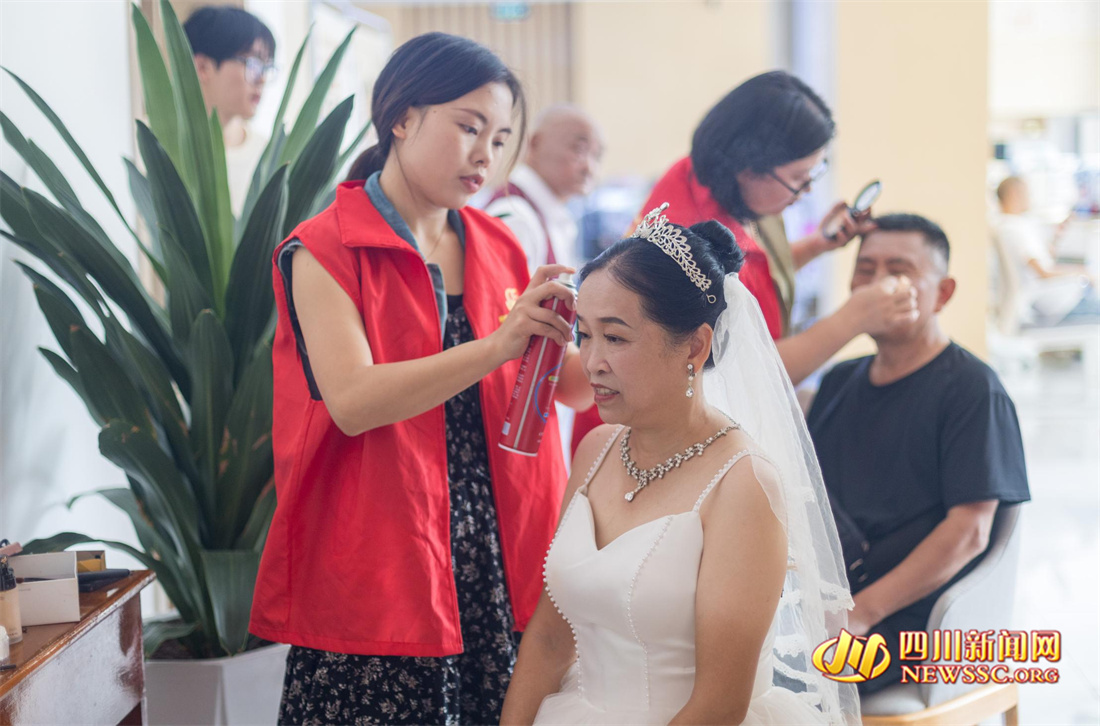 盛夏之际,三台山社区大厅,因一袭大红色的幕布而越发温馨、热闹。不少老人自发而来,或在家人的陪伴下,赴一场浪漫的婚纱拍摄公益活动,期待通过镜头定格他们相濡以沫的幸福人生。