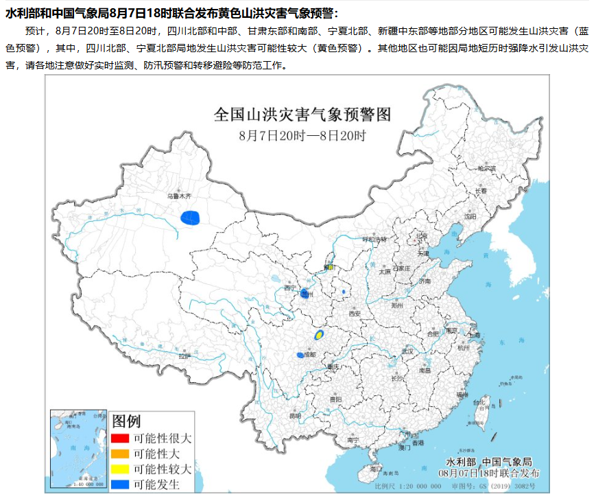 注意!8月7日18时,中央气象台、水利部和中国气象局连发4个预警,个个都点到了四川: