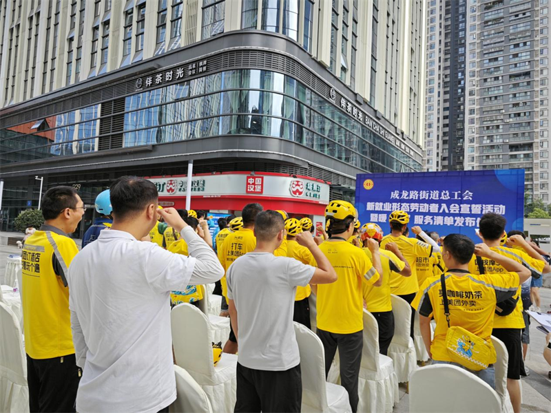 成都市锦江区成龙路街道总工会举办新就业形态劳动者入会宣誓活动