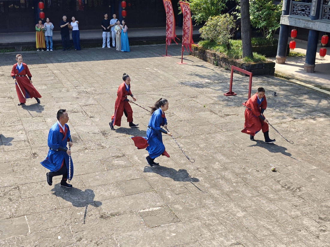 使广大观众通过节目深入感受非遗之美,获得沉浸式的体验,是讲好非遗故事的关键所在。在节目摄制过程中,来自四川的非遗不只是静态的展示,更通过趣味的互动展现非遗的技艺智慧、传承人的匠心精神。在金堂五凤溪古镇,鼓声拉开了摄制的序幕,起源于唐代的传统体育运动步打球在古色古香的庭院内展开,身着传统服饰的主持人、嘉宾与体验者,以杖击球,体验从历史中走出的体育激情。此外,蜀绣、青城武术、自贡杂技、郫县豆瓣传统制作技艺、翻山铰子、川剧等体验内容也囊括在摄制过程中,让观众得以在后续成片中饱览四川非遗的魅力。