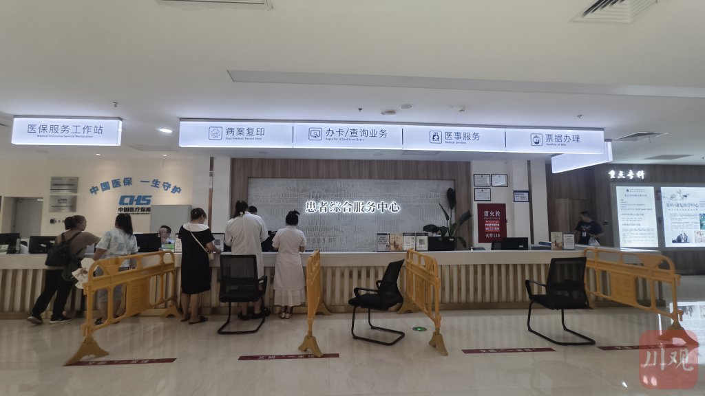 以眉山市人民医院为例,该院患者综合服务中心整合超声、检验、放射、挂号收费、出入院、医保等方面业务,实现医保事务、打印病历和处方、查询各类信息、新办就诊卡、补打住院结账费用清单等事项“一窗通办,一站服务”。