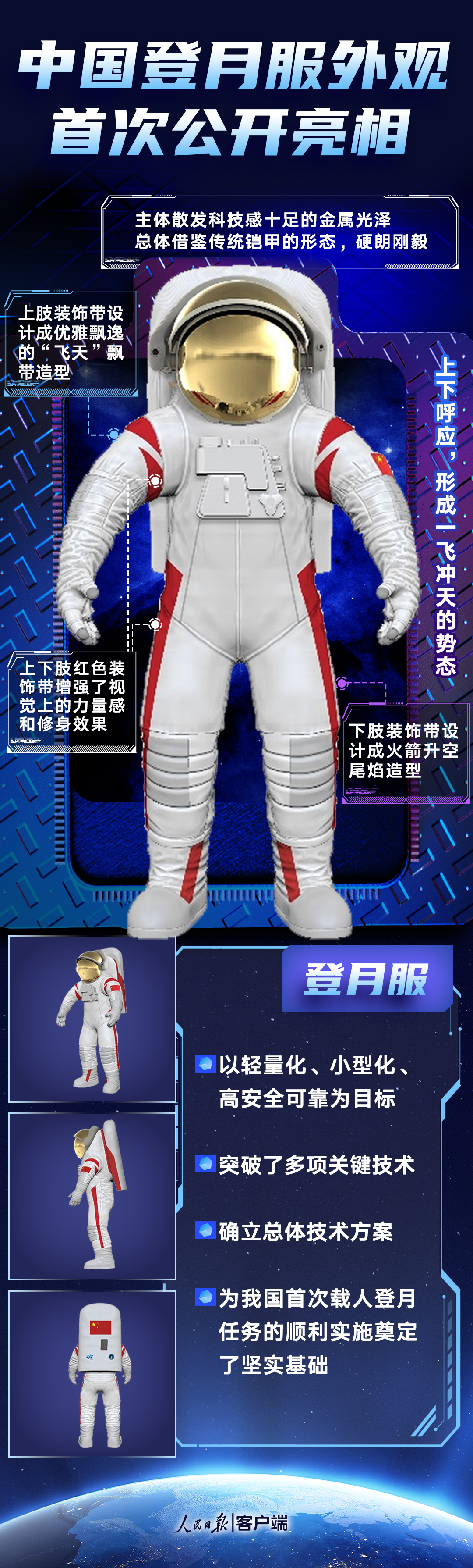 “飞天”铠甲!一图看懂中国登月服外观细节