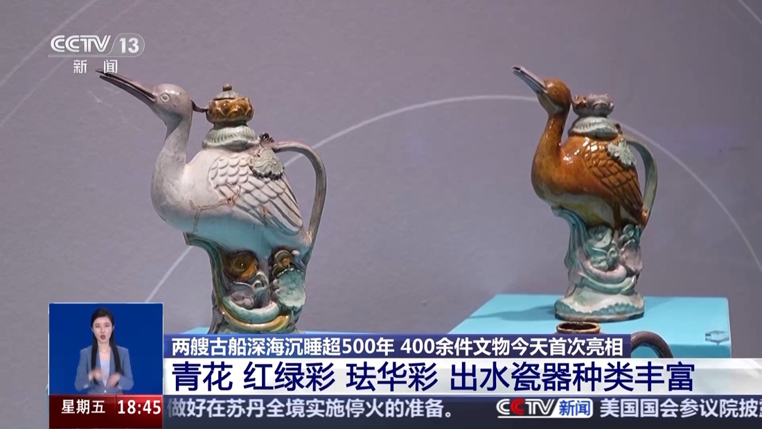 中国(海南)南海博物馆馆长辛礼学:一号沉船的瓷器可能是数量最大的,我们在文献上看到有记载的珐紫、珐翠、珐青、珐黄、珐蓝等等,在南海西北陆坡沉船当中都能够看到,这是非常令人振奋的一个事情。这里边有很大批的东西非常高端,有些瓷器跟我们国内的官窑基本上是一致的,它的烧造水平、装饰工艺等等非常豪华。