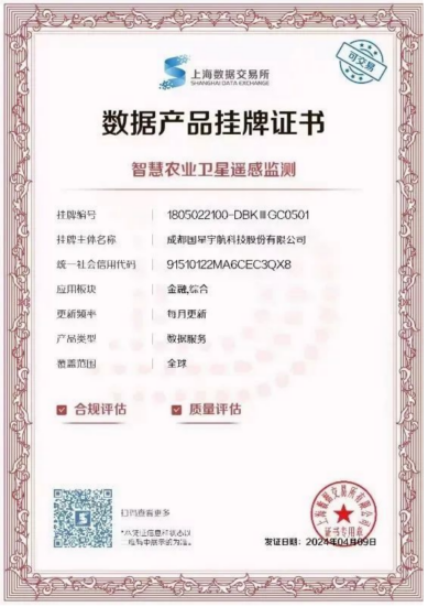 据悉,成都国星宇航科技股份有限公司“智慧农业卫星遥感监测数据”是融合卫星遥感数据、人工智能、大数据等多项技术,对农作物的种植分类、分布情况、占地面积、生长态势、病虫害、土壤墒情、产量估算和灾情等场景进行精准识别、分类、评估和监测。今年4月,成都国星宇航科技股份有限公司成功在上海数据交易所挂牌“智慧农业卫星遥感监测”数据产品。(图文:省知识产权发展研究中心)