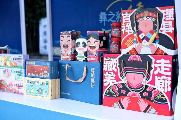 “包装盒上的熊猫好可爱。”理县源理农业开发有限责任公司花车上一盒桃酥的包装引起了现场游客的关注,“这种创意的包装设计可以提升产品关注度,再加上企业的营销渠道合作,好产品进一步拓宽了好销路。”省委宣传部派驻理县薛城镇较场村驻村干部刘波介绍道,这次他们带来了一些卖得很火的羌绣文创产品,比如笔记本、车载香薰、化妆盒等,也是想让羌绣和彝绣在这里碰撞出更多火花。