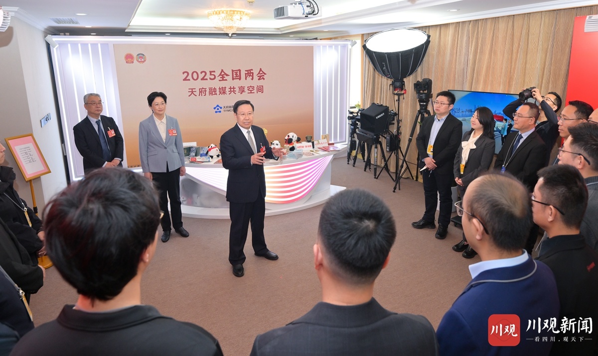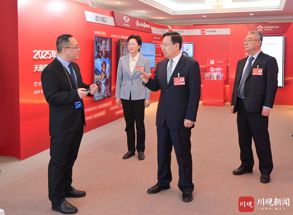 今年全国两会,我省在代表团驻地创新设立天府融媒共享空间,通过“统一调度、分类预约、动态协调、资源共享”的运行机制,有效联动中央媒体,高效调度省市县三级媒体资源,立体纵深报道两会盛况。王晓晖、施小琳步入共享空间视频直播区,认真听取共享空间各功能区作用发挥情况介绍,并来到四川日报报业集团、四川广播电视台、四川新传媒集团和省人大报刊社展示区,与驻地记者代表亲切交流,详细了解各媒体宣传报道情况,观看融合传播产品演示等,对中央有关媒体和我省主要媒体全国两会宣传报道取得的成效给予充分肯定,对大家的辛勤付出表示感谢。王晓晖说,今年是“十四五”规划收官和“十五五”蓄势之年,这次全国两会意义重大、举世瞩目。连日来,各家媒体坚持正确政治方向,紧扣大会主题,畅通会场内外、网上网下,推出了一批有创意、有深度、有温度的作品,做到了把习近平总书记重要讲话精神宣传好、把新技术新手段运用好、把代表委员履职故事报道好,唱响了主旋律、传播了正能量、提振了精气神,也展现了主流媒体改革创新发展的最新成果。希望大家再接再厉,继续以饱满政治热情、强烈责任担当、优良工作作风高质量完成两会各项报道任务。